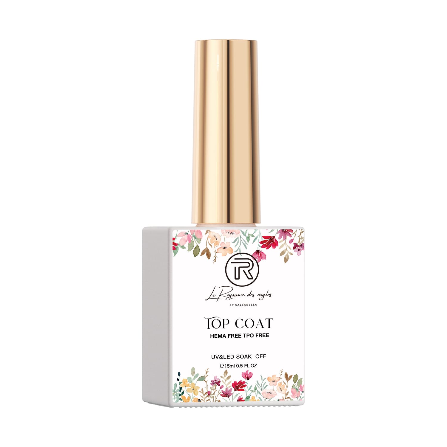 Le Top Coat professionnel Royaume des Ongles apporte une brillance intense effet miroir et protège durablement vos poses en vernis semi-permanent et gel.